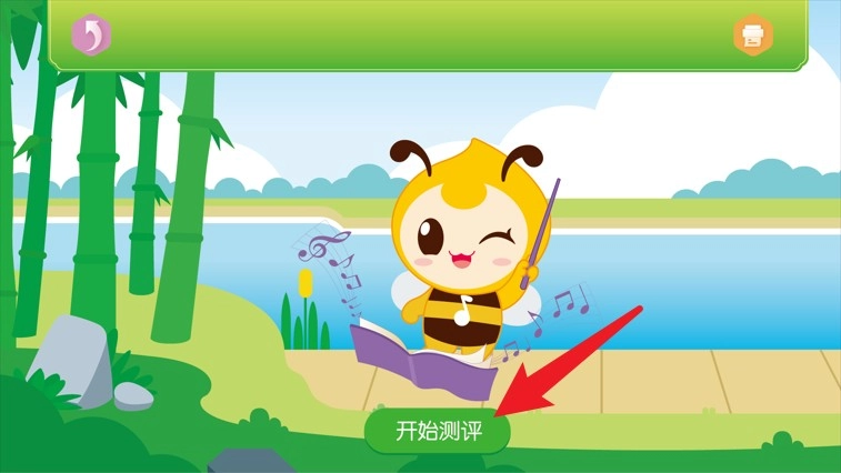 2、登录成功后进入主界面,点击可爱小蜜蜂旁边的“开始测评”按钮,就能开启学习前的基础测试啦。