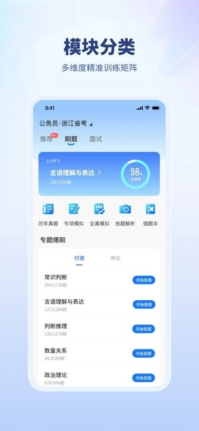 面试用的题库规模庞大且质量上乘,涵盖了近十年的国考、省考真题,还有精心编写的模拟题,题目总数超过一万道。题库依据考试科目和知识点做了细致的分类,便于考生开展专项练习和系统性的复习。每道题都附带详细的解析和答案,不仅能让考生明白题目怎么做,还能让他们理解背后的解题思路。