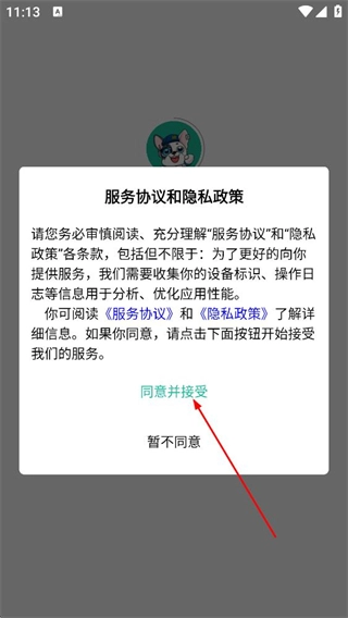 1、在弹出的保安全多服务协议与隐私政策窗口中,点击“同意并接受”按钮,即可进入欢迎页面。