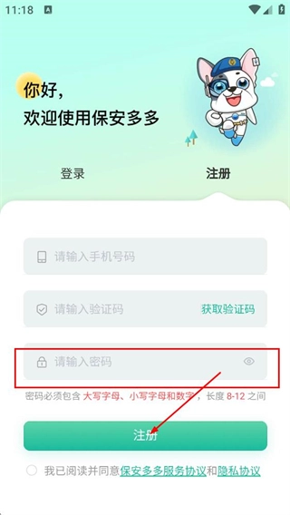 4、进入注册页面后,设置一个满足要求的密码,接着点击注册按钮,这样就能完成安全系数更高的账号注册流程了。