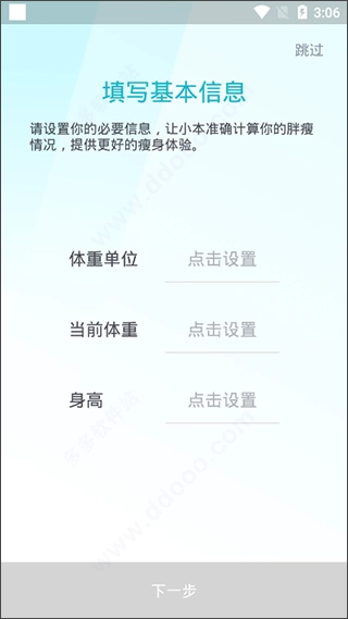 1、第一次使用体重小本时,系统会提示你填写当前的体重与身高信息;