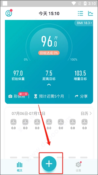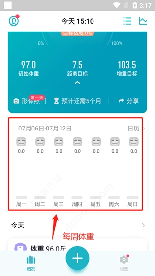 7、以上是体重概况,点击圆圈可快速添加今日体重,点击对应项目可快速设置或修改;