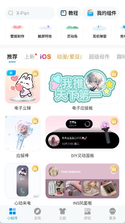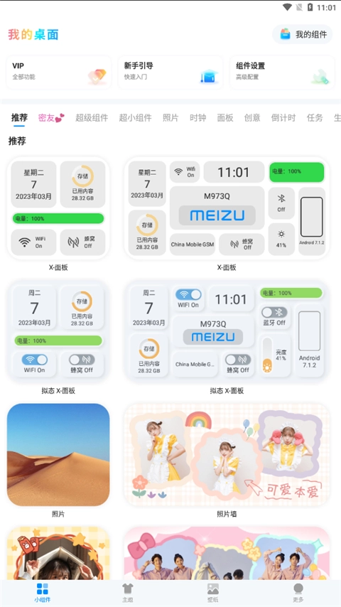 2、上方能够挑选不同种类的小组件,像照片、时钟、倒计时之类的。
