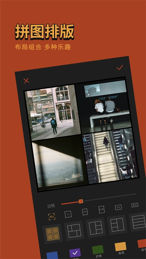 3. 用户能够把连续拍摄的几张不同照片拼接成一张长照片,也可以将这些照片缩小后放进相框里。