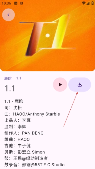 4、进入歌曲详情页后,点击【按钮】,就能把这首歌曲保存到本地设备里了。