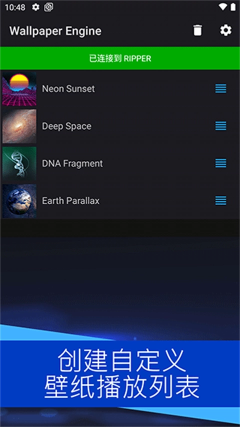 • 连接到 Windows 上的 Wallpaper Engine,以将桌面库传输到手机上。
