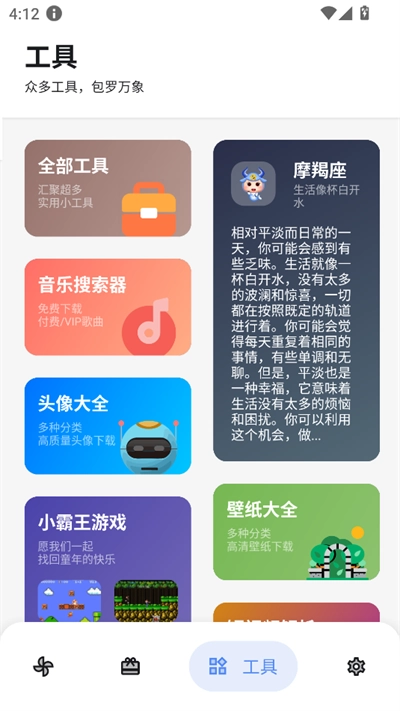 -集成「音乐搜索器」「短视频解析」等实用工具;