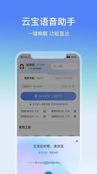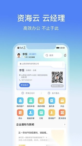 云经理是一款高效便捷的企业协同办公管理工具,专为提升团队工作效率而设计。通过手机就能随时查看员工考勤状态,处理各类审批流程,实现智能化办公管理;系统采用角色权限分级机制,搭配云名片、积分商城等实用功能,让日常办公更轻松高效。软件界面简洁直观,操作流畅,支持多终端数据同步,帮助管理者随时随地掌握团队动态。若有需要,可前往鸟进行安装。