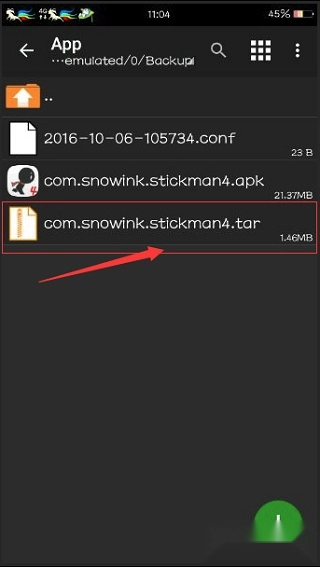 3、通过ZAchiver进入备份文件所在的目录,点击最后一个后缀为tar的文件,将其解压至当前目录,操作完成后会得到一个名为data的解压文件。