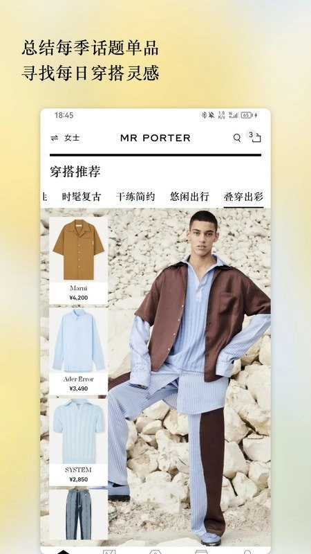 1. 平台涵盖女士精品与男士风尚两大核心板块,MR PORTER系列专门展示现代绅士的着装方案。