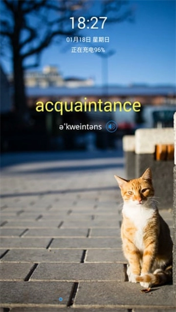 在锁屏界面,向左滑动单词即可解锁,向右滑动则能查看浏览过的单词。
