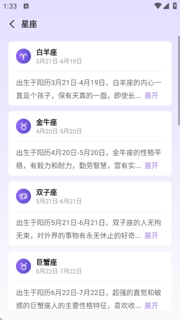 1、深度剖析十二星座的性格特征、情绪表现模式以及日常行为偏好,助力你全方位认识自身与他人的个性长处及交往特性。