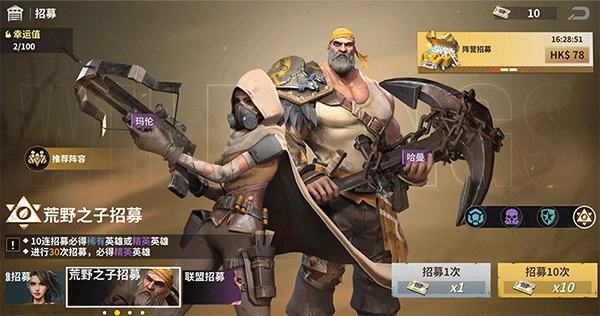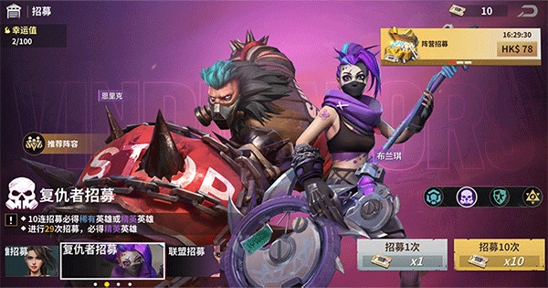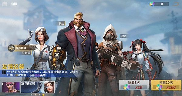 点击【招募】按钮能够随机获取英雄。若招募到已拥有的英雄,该英雄将自动转化为同名海报,此海报可用于英雄的进阶培养。