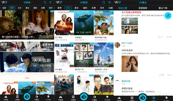 - 为用户汇聚全球海量高清3D、VR影视资源,以及各类手机、电脑端的VR游戏大作
