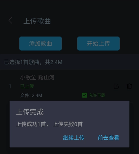 2、选择需要上传的歌曲,下方点击确认。