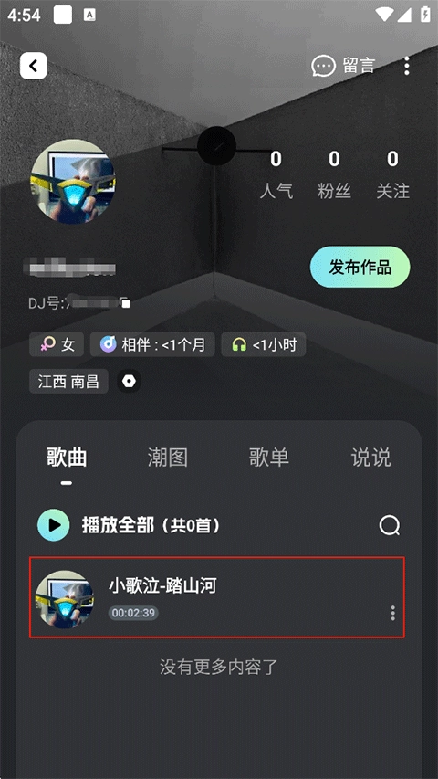 5、上传的音乐将会在您的个人主页展示。