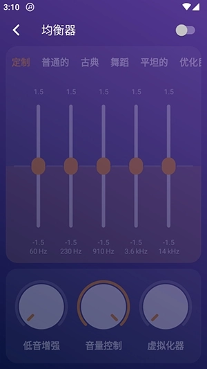 - 均衡器:提供音频均衡器,调节音质。