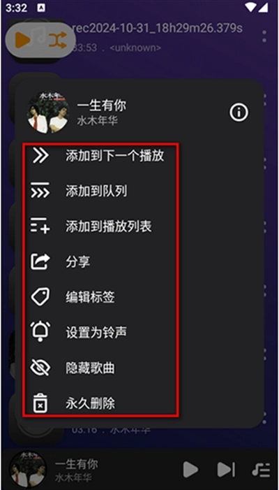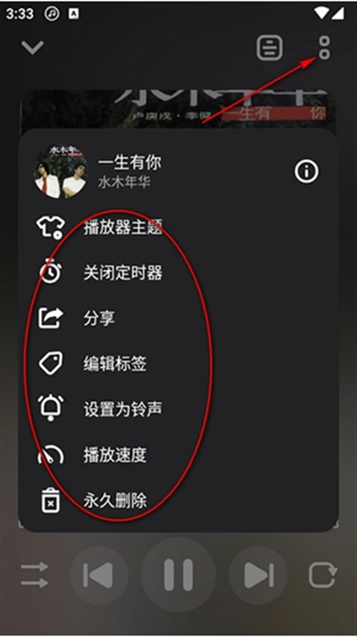 4、在播放页面右上角,还可以编辑歌曲的相关信息。