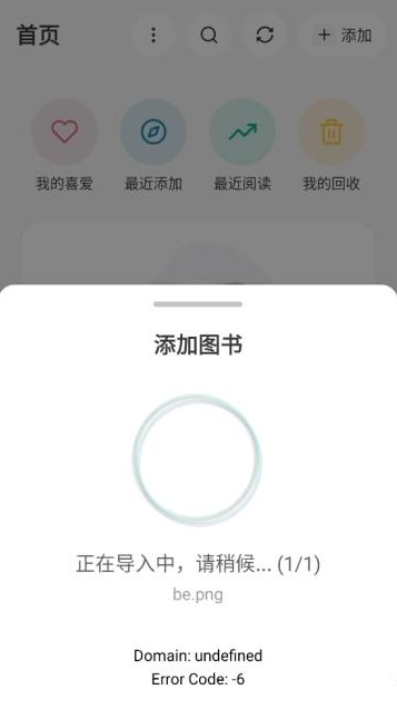 3、添加过程需要稍等片刻,请耐心等待,完成后会自动显示在书架里哦。