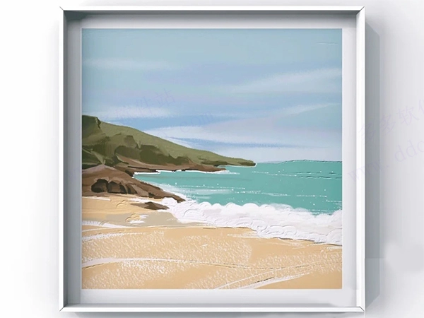 可以通过调节笔刷的透明度与干燥强度,营造出干画法的效果,像沙滩上的白色纹理就能这样表现。
