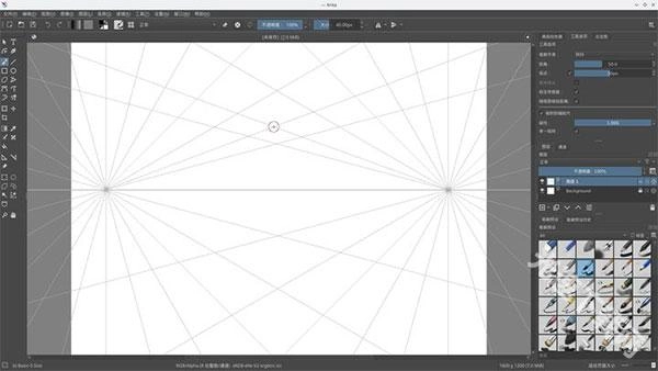 打开Krita后,能发现它的笔刷系统十分强大,配备了多种依据自然笔刷进行建模的笔刷引擎。