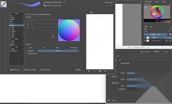 它配备了制作切线空间法线贴图所需的图层混合模式、配套滤镜与蒙版,以及笔身倾斜传感器等功能,很多人用它来制作材质也就不足为奇了。