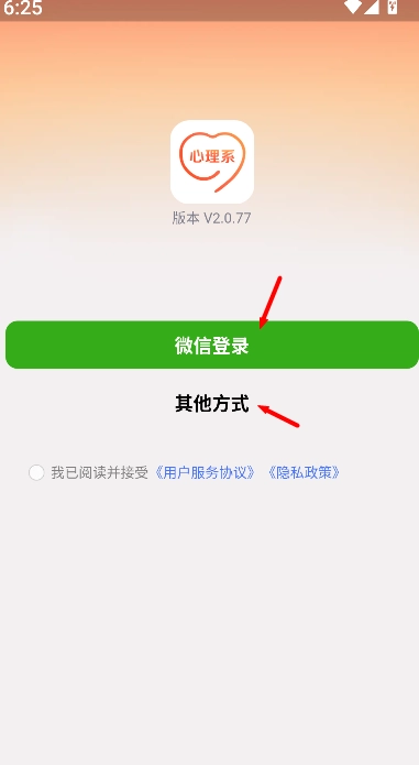 在登录页面,你可以选择用微信快速登录,也能挑选其他登录方式进入主页面。