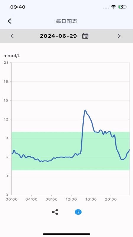 界面设计以数据为核心,将血糖曲线图表置于主要视觉区域,以此保证关键信息得到突出呈现。