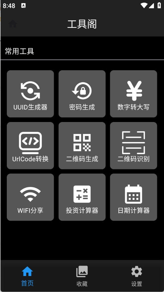 工具阁里有超多工具资源,计算器、二维码生成、二维码识别这些都能找到,而且所有工具全免费,点一下就能用,常用的还能收藏起来,随时打开就能用。