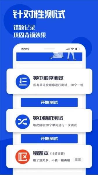 多种测试练习:顺序测试、随机测试两种模式,让您能够根据自己的学习需求进行有针对性的练习;