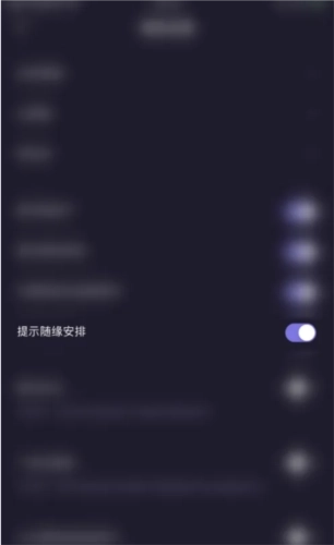 4、“当“提示随缘安排”后方的圆点呈现紫色时,即意味着朵朵开黑的提示随缘安排功能已成功开启。