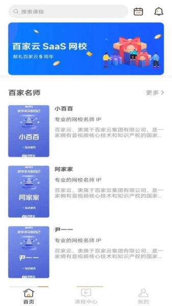 1、在本站安装并打开百家云校专业版,进入软件首页后,用户能够搜索自己想学习的网校。