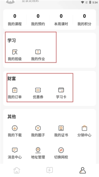 4、点击进入“我的”页面,这里为用户提供了诸多实用的学习功能板块。