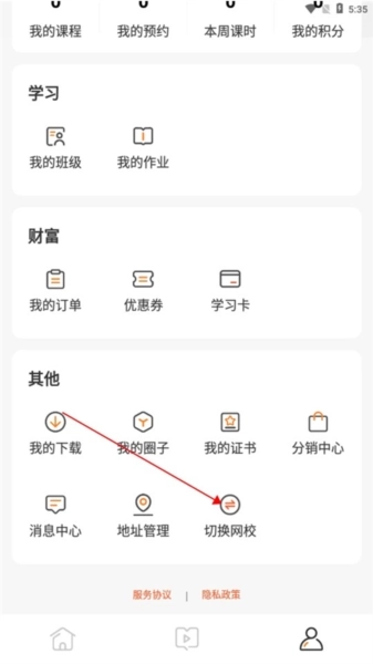5、用户还可以点击切换网校,选择不同的网校来进行学习。