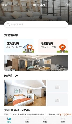 1、打开东南青年汇,借助首页的搜索栏查找目标居住区域的房源。