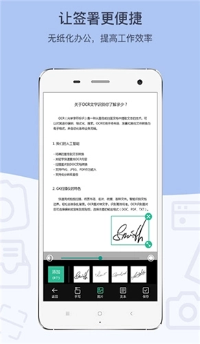 直接在您的设备屏幕上签署文件,还能按照您的需求添加到扫描件当中。