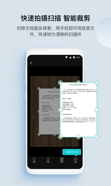 用手机拍摄文档,可将画面平面化并去除杂乱背景,最终生成高清的JPG图片或PDF文件。