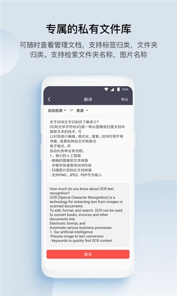 可识别汉语、英语、法语、俄语、西班牙语等56种语言,支持无限制翻译,还能对翻译内容进行编辑与分享!