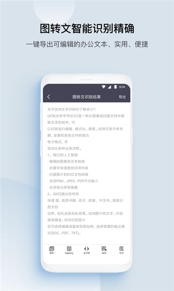 智能OCR文字识别技术,支持文本的无限制编辑、复制、保存与分享操作!