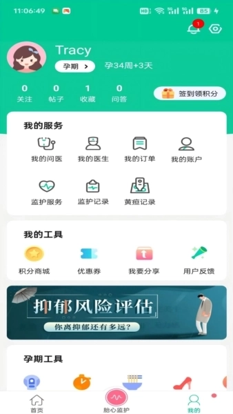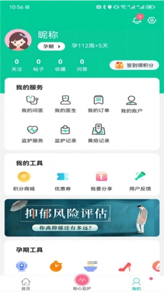 包含数胎动、产检提醒、疫苗提醒、成长发育评估、睡眠记录等孕期、育儿期等实用小工具。