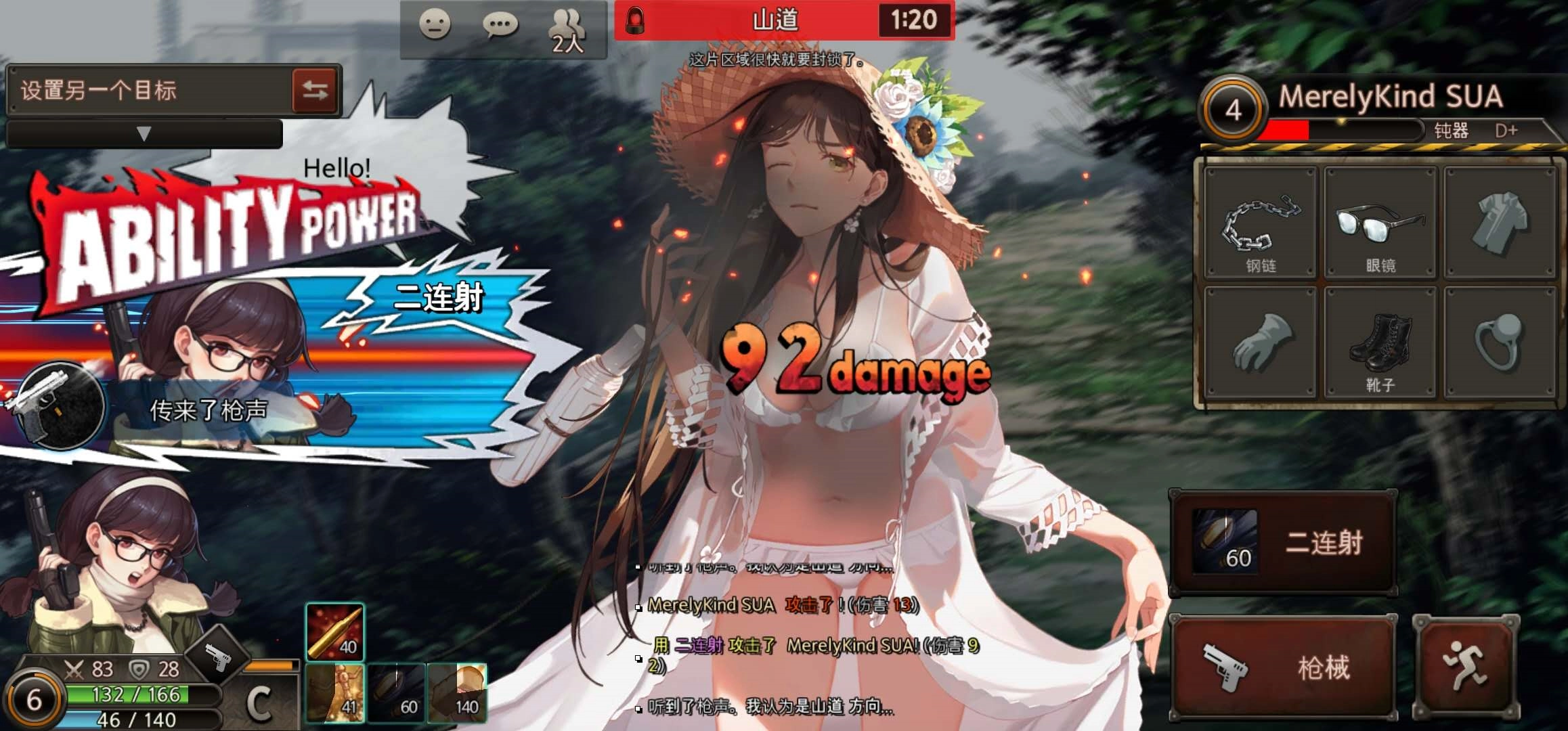 当我们拿到这款“枪王”时,就可以主动搜寻敌人,开启战斗模式了。需要注意的是,我们要么主动寻找消音器,要么应对突然遭遇的敌人——现在我们完全有底气面对对手,不过前期建议先别急着用技能,等对方血量降到一半以下时,再释放二连击技能,这样就能直接秒杀敌人。最后希望大家能合理运用这个萌妹子角色,掌握黑色幸存者中阿雅的具体玩法。
