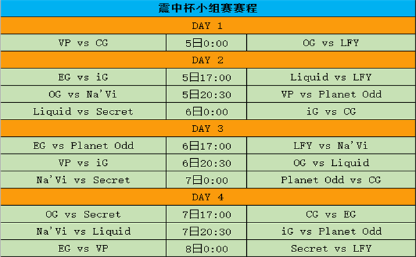 小组赛赛程: